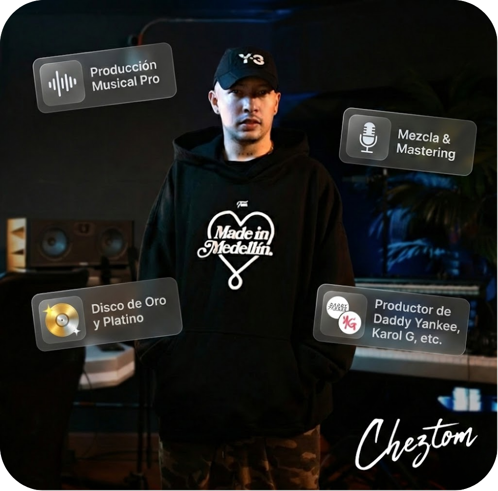 Cheztom es productor musical y compositor con más de 18 años en la industria, trabajando con artistas como Daddy Yankee, J Balvin, Karol G, Maluma, Rauw Alejandro y muchos más.
